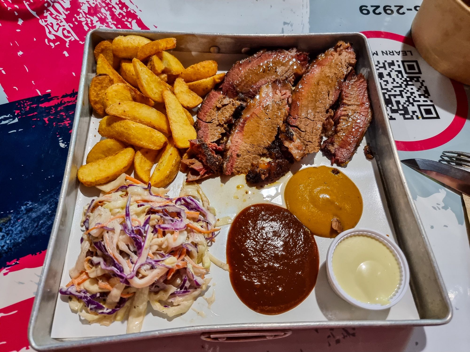 Pizza from Pizza Massilia. BBQ brisket from Holy Smokes. Mutabal from Al Saray. Dosa/Vada/Idli/Uttapam from Sugam.