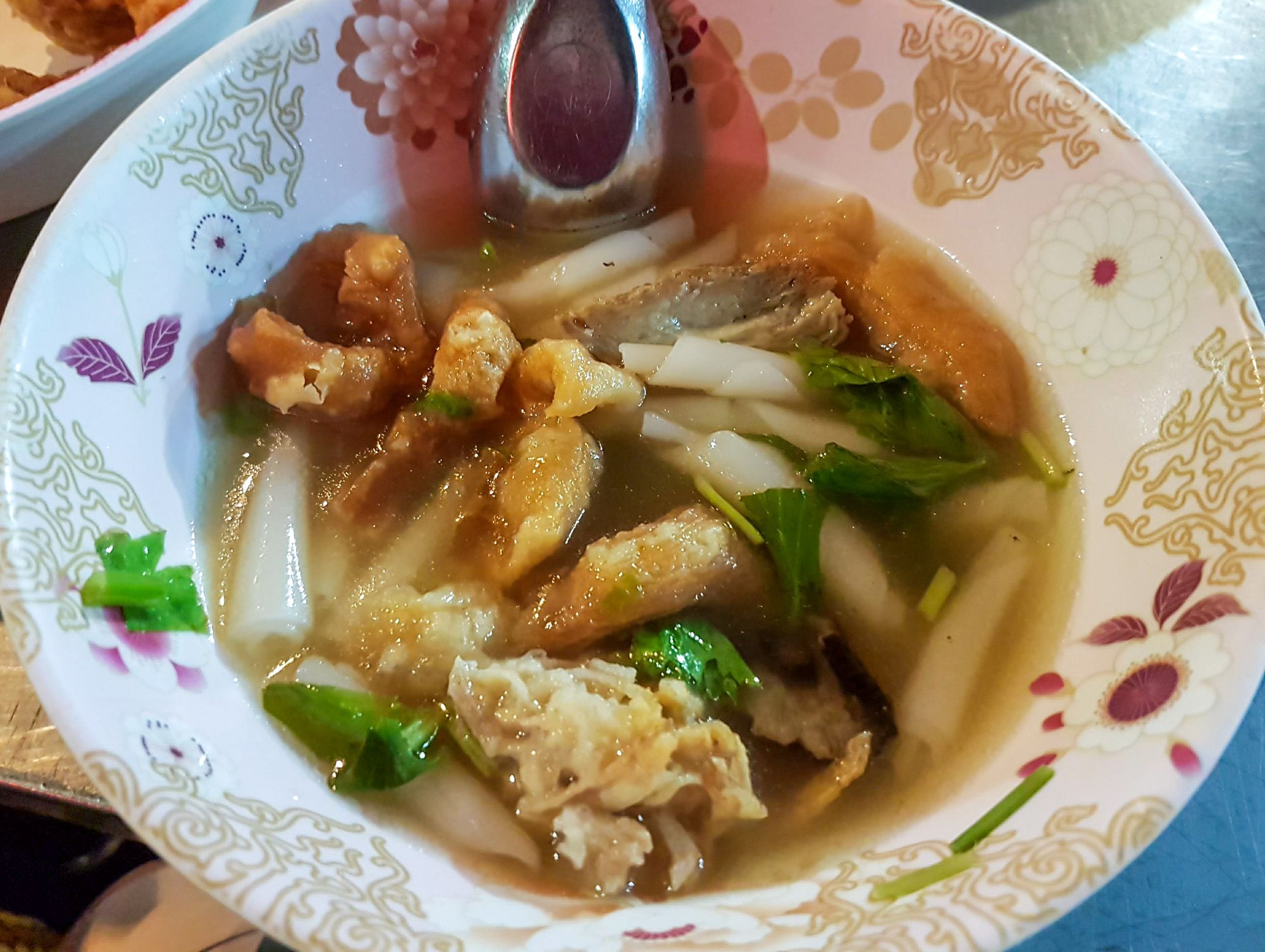 My favorite part is all the foods made with fake meat products. I’m far from a vegetarian but I do enjoy meat substitutes. Fake pork, shrimp, chicken, you name it, they’ll add it to a dish, and it will taste delicious. I don't like offal, so the Jay festival is a great time to try certain dishes that normally contain a lot of offal. For example, kway chap is a soup made with rolled rice noodle sheets and lots of pork offal. I really enjoy the jay version because I don't have to worry about ordering it without all the innards.