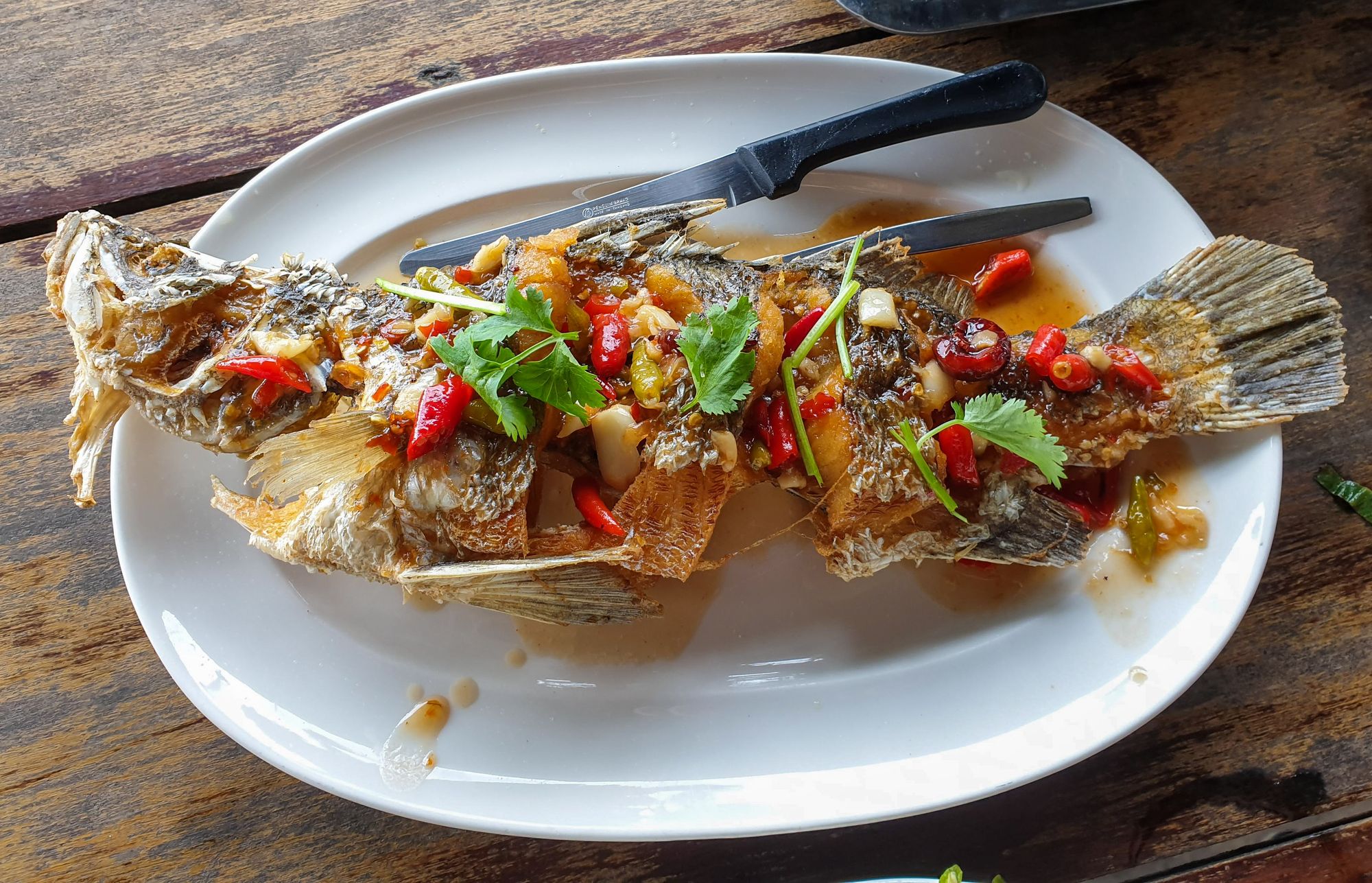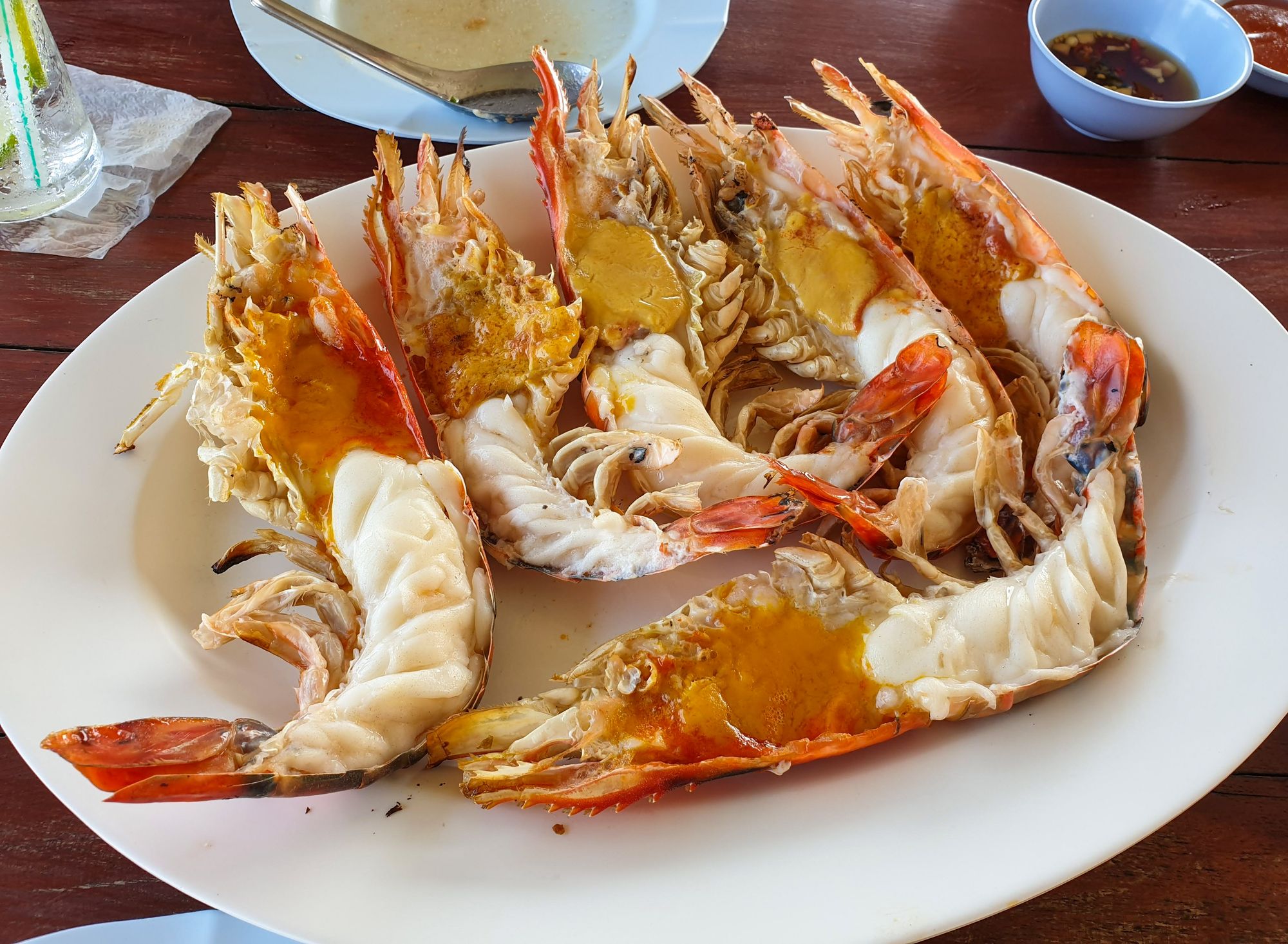 I love to order fried or steamed whole fish, goong pao (grilled shrimp), tom yum goong (tom yum soup with shrimp), tod mun goong (fried shrimp cakes), and more. In order to find a good restaurant, I will search for seafood restaurants, see which ones are by the water, scroll through the reviews, and then see which ones have high ratings written in Thai. If locals and Thai tourists are happy with it, I probably will be too.