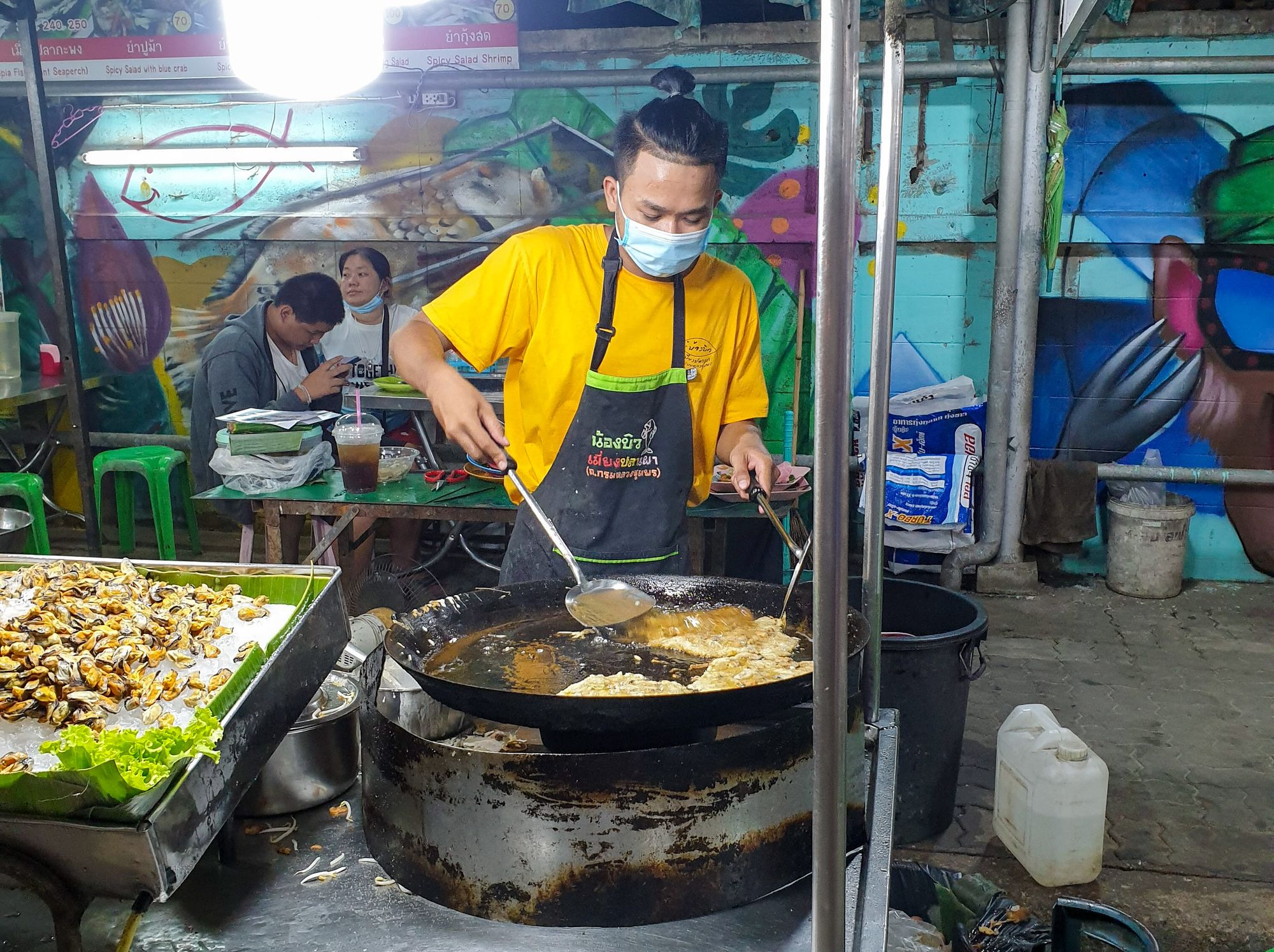 In Bangkok, the festivities take over Chinatown, where stalls of vendors stretch for what seems like a kilometer, and crowds gather every night. Some stalls have a long wait just to sit down and be served. The Siam Paragon food hall and other food halls around Bangkok often participate in the festival as well.